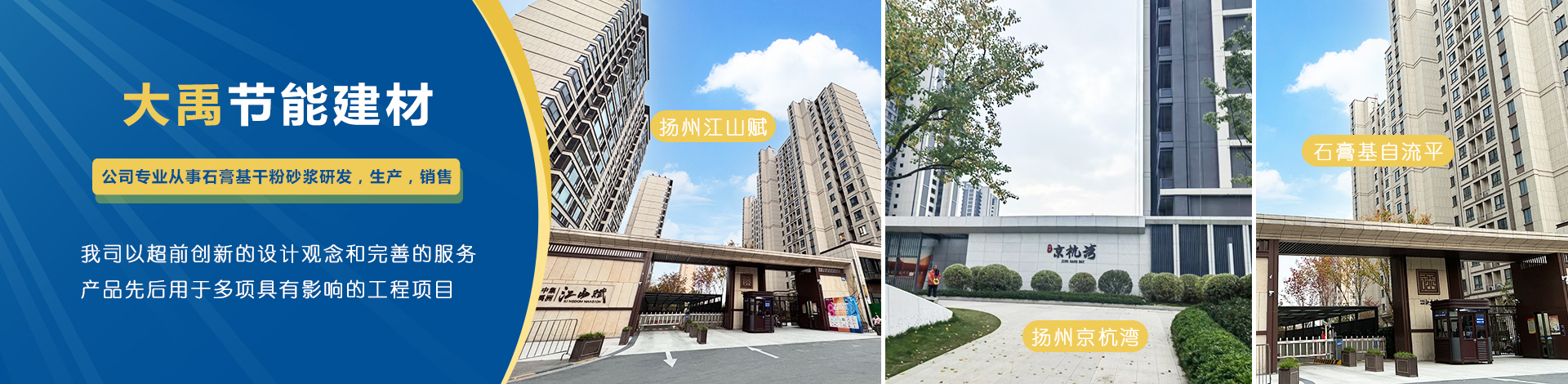 揚(yáng)州市大禹節(jié)能建材科技有限公司成立于2005年9月,位于聯(lián)合國(guó)宜居城市---江蘇省揚(yáng)州市,地處江都經(jīng)濟(jì)開(kāi)發(fā)區(qū),與揚(yáng)、鎮(zhèn)、泰三市接壤,交通十分便捷。公司是專(zhuān)業(yè)從事石膏基干粉砂漿研發(fā),生產(chǎn),銷(xiāo)售一體化的綜合性科技型企業(yè),為國(guó)家標(biāo)準(zhǔn)GB/T2862-2012《抹灰石膏》的參編單位。 公司擁有國(guó)內(nèi)一流的特種砂漿生產(chǎn)線(xiàn),并配有各種先進(jìn)的檢測(cè)儀器,年生產(chǎn)能力可達(dá)10萬(wàn)噸。各崗位管理及技術(shù)人員齊備,對(duì)產(chǎn)品···